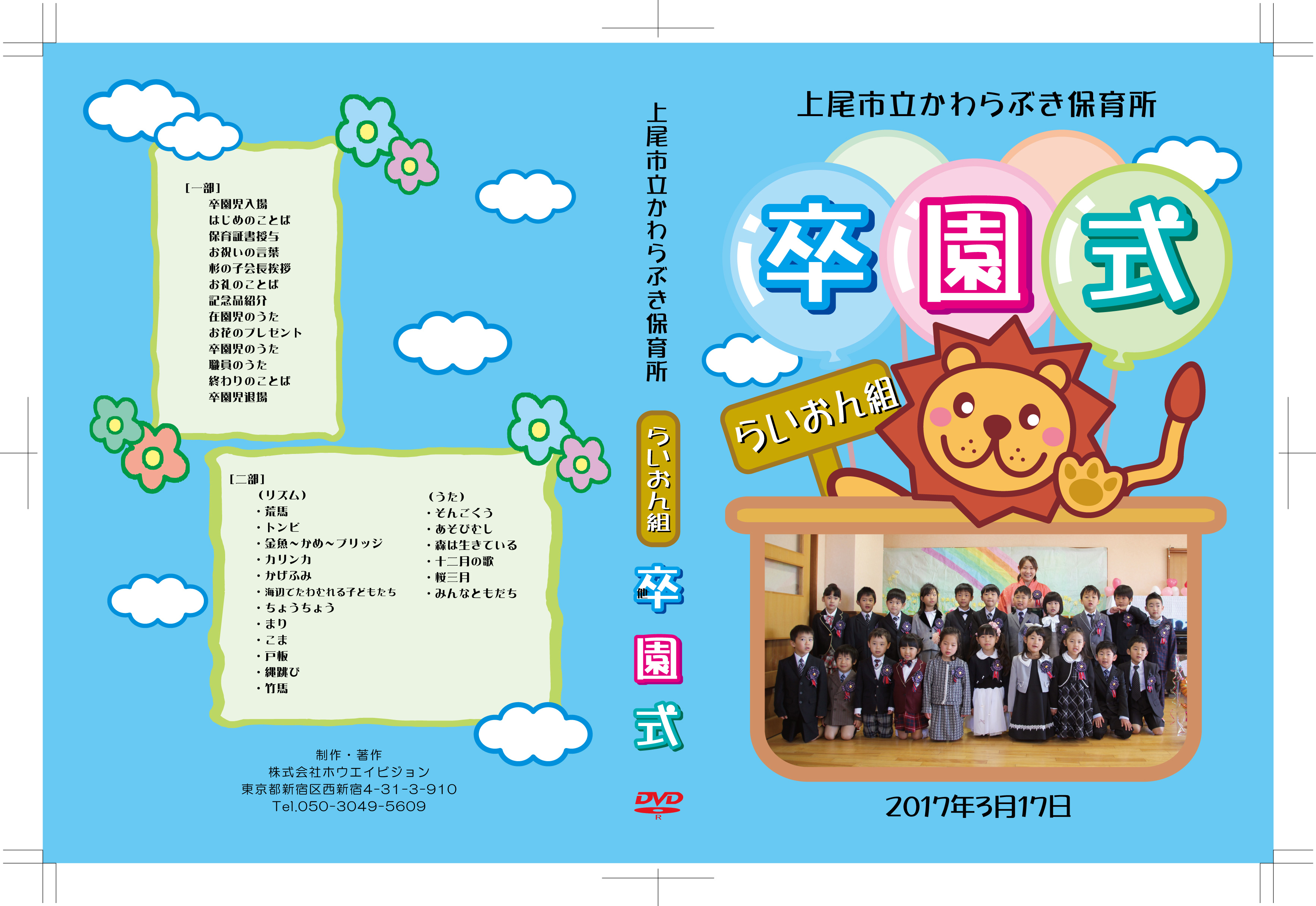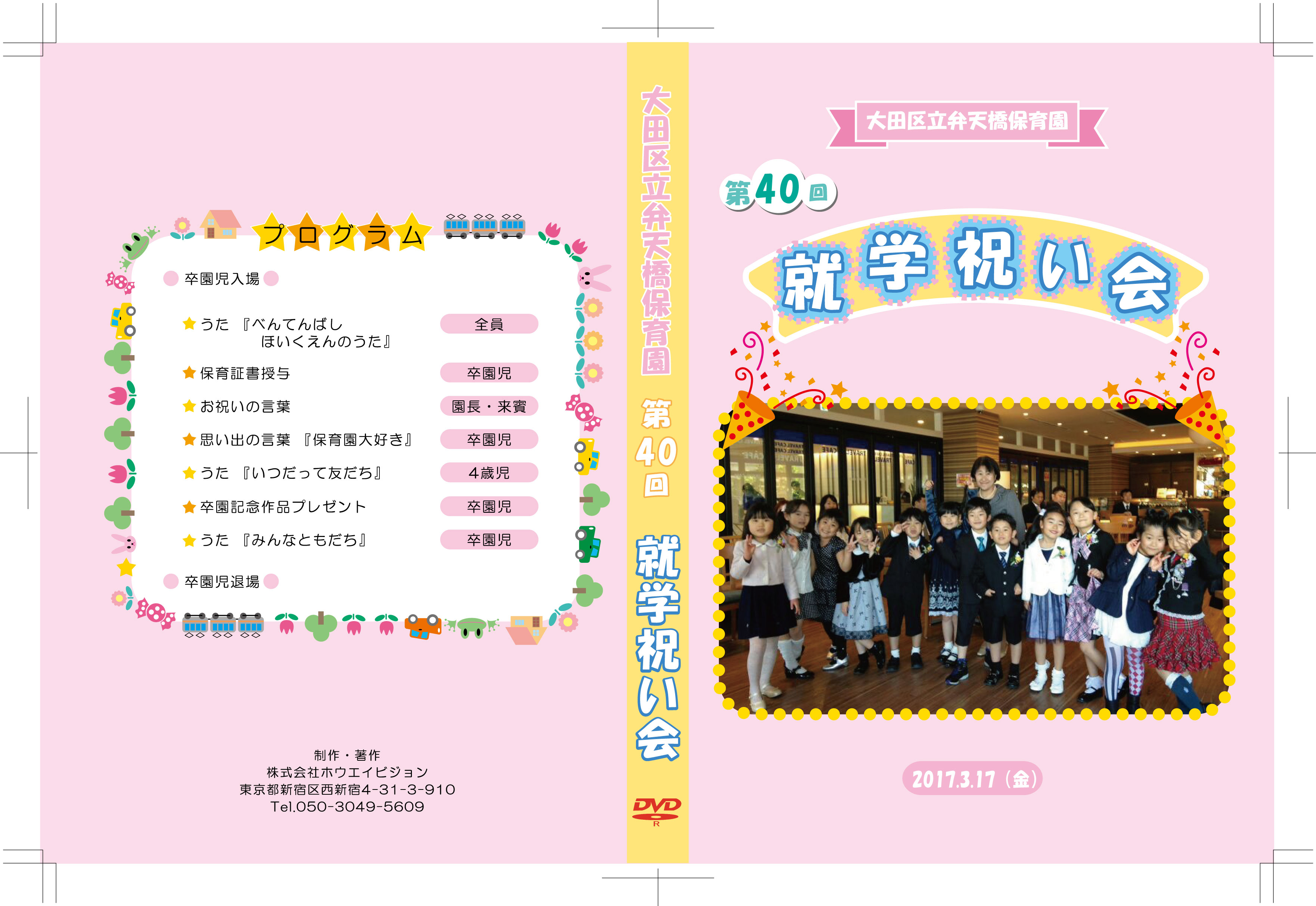 可愛いイラストと幼稚園・保育園名、撮影日が入ります。